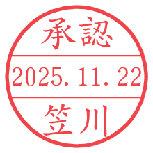 オプションの「電子透かし」をチェックし[生成]すると、見た目には分からないように、UNIXタイムスタンプを識別情報としてPNG形式の日付印に埋め込みます。 日付スタンプメーカーの使い方「部署」「名前」は最大8文字まで入力が可能です。「スタンプの色」を選択し、[生成]ボタン押下で印影画像が更新され、背景を透明に設定したPNG形式とPDF形式の印影画像がリンクからダウンロードできます。 オプションの「電子透かし」は、その性格上日付印ととても相性の良い付加サービスです。 別ページの「タイムスタンプと電子透かし」でも詳しく解説しますが、このオプションを追加することで、日付印が生成された日時に確かにその印が存在していることが証明されます。 ![]() 笠川さんの電子印鑑が作れます。社内でのデータ書類閲覧確認用など、認印的な使い方のできる電子印鑑が作れます。 ![]() 古代文字で落款印が作れます。「落款スタンプメーカー」で作品を引き立たせる落款印が作れます。
