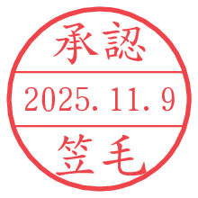 オプションの「電子透かし」をチェックし[生成]すると、見た目には分からないように、UNIXタイムスタンプを識別情報としてPNG形式の日付印に埋め込みます。 日付スタンプメーカーの使い方「部署」「名前」は最大8文字まで入力が可能です。「スタンプの色」を選択し、[生成]ボタン押下で印影画像が更新され、背景を透明に設定したPNG形式とPDF形式の印影画像がリンクからダウンロードできます。 オプションの「電子透かし」は、その性格上日付印ととても相性の良い付加サービスです。 別ページの「タイムスタンプと電子透かし」でも詳しく解説しますが、このオプションを追加することで、日付印が生成された日時に確かにその印が存在していることが証明されます。 ![]() 笠毛さんの電子印鑑が作れます。社内でのデータ書類閲覧確認用など、認印的な使い方のできる電子印鑑が作れます。 ![]() 古代文字で落款印が作れます。「落款スタンプメーカー」で作品を引き立たせる落款印が作れます。