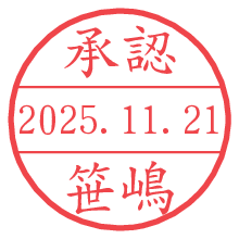 オプションの「電子透かし」をチェックし[生成]すると、見た目には分からないように、UNIXタイムスタンプを識別情報としてPNG形式の日付印に埋め込みます。 日付スタンプメーカーの使い方「部署」「名前」は最大8文字まで入力が可能です。「スタンプの色」を選択し、[生成]ボタン押下で印影画像が更新され、背景を透明に設定したPNG形式とPDF形式の印影画像がリンクからダウンロードできます。 オプションの「電子透かし」は、その性格上日付印ととても相性の良い付加サービスです。 別ページの「タイムスタンプと電子透かし」でも詳しく解説しますが、このオプションを追加することで、日付印が生成された日時に確かにその印が存在していることが証明されます。 ![]() 笹嶋さんの電子印鑑が作れます。社内でのデータ書類閲覧確認用など、認印的な使い方のできる電子印鑑が作れます。 ![]() 古代文字で落款印が作れます。「落款スタンプメーカー」で作品を引き立たせる落款印が作れます。