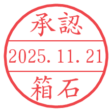 オプションの「電子透かし」をチェックし[生成]すると、見た目には分からないように、UNIXタイムスタンプを識別情報としてPNG形式の日付印に埋め込みます。 日付スタンプメーカーの使い方「部署」「名前」は最大8文字まで入力が可能です。「スタンプの色」を選択し、[生成]ボタン押下で印影画像が更新され、背景を透明に設定したPNG形式とPDF形式の印影画像がリンクからダウンロードできます。 オプションの「電子透かし」は、その性格上日付印ととても相性の良い付加サービスです。 別ページの「タイムスタンプと電子透かし」でも詳しく解説しますが、このオプションを追加することで、日付印が生成された日時に確かにその印が存在していることが証明されます。 ![]() 箱石さんの電子印鑑が作れます。社内でのデータ書類閲覧確認用など、認印的な使い方のできる電子印鑑が作れます。 ![]() 古代文字で落款印が作れます。「落款スタンプメーカー」で作品を引き立たせる落款印が作れます。
