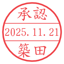 オプションの「電子透かし」をチェックし[生成]すると、見た目には分からないように、UNIXタイムスタンプを識別情報としてPNG形式の日付印に埋め込みます。 日付スタンプメーカーの使い方「部署」「名前」は最大8文字まで入力が可能です。「スタンプの色」を選択し、[生成]ボタン押下で印影画像が更新され、背景を透明に設定したPNG形式とPDF形式の印影画像がリンクからダウンロードできます。 オプションの「電子透かし」は、その性格上日付印ととても相性の良い付加サービスです。 別ページの「タイムスタンプと電子透かし」でも詳しく解説しますが、このオプションを追加することで、日付印が生成された日時に確かにその印が存在していることが証明されます。 ![]() 築田さんの電子印鑑が作れます。社内でのデータ書類閲覧確認用など、認印的な使い方のできる電子印鑑が作れます。 ![]() 古代文字で落款印が作れます。「落款スタンプメーカー」で作品を引き立たせる落款印が作れます。