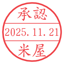 オプションの「電子透かし」をチェックし[生成]すると、見た目には分からないように、UNIXタイムスタンプを識別情報としてPNG形式の日付印に埋め込みます。 日付スタンプメーカーの使い方「部署」「名前」は最大8文字まで入力が可能です。「スタンプの色」を選択し、[生成]ボタン押下で印影画像が更新され、背景を透明に設定したPNG形式とPDF形式の印影画像がリンクからダウンロードできます。 オプションの「電子透かし」は、その性格上日付印ととても相性の良い付加サービスです。 別ページの「タイムスタンプと電子透かし」でも詳しく解説しますが、このオプションを追加することで、日付印が生成された日時に確かにその印が存在していることが証明されます。 ![]() 米屋さんの電子印鑑が作れます。社内でのデータ書類閲覧確認用など、認印的な使い方のできる電子印鑑が作れます。 ![]() 古代文字で落款印が作れます。「落款スタンプメーカー」で作品を引き立たせる落款印が作れます。