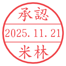 オプションの「電子透かし」をチェックし[生成]すると、見た目には分からないように、UNIXタイムスタンプを識別情報としてPNG形式の日付印に埋め込みます。 日付スタンプメーカーの使い方「部署」「名前」は最大8文字まで入力が可能です。「スタンプの色」を選択し、[生成]ボタン押下で印影画像が更新され、背景を透明に設定したPNG形式とPDF形式の印影画像がリンクからダウンロードできます。 オプションの「電子透かし」は、その性格上日付印ととても相性の良い付加サービスです。 別ページの「タイムスタンプと電子透かし」でも詳しく解説しますが、このオプションを追加することで、日付印が生成された日時に確かにその印が存在していることが証明されます。 ![]() 米林さんの電子印鑑が作れます。社内でのデータ書類閲覧確認用など、認印的な使い方のできる電子印鑑が作れます。 ![]() 古代文字で落款印が作れます。「落款スタンプメーカー」で作品を引き立たせる落款印が作れます。