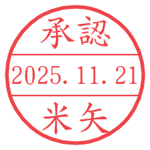 オプションの「電子透かし」をチェックし[生成]すると、見た目には分からないように、UNIXタイムスタンプを識別情報としてPNG形式の日付印に埋め込みます。 日付スタンプメーカーの使い方「部署」「名前」は最大8文字まで入力が可能です。「スタンプの色」を選択し、[生成]ボタン押下で印影画像が更新され、背景を透明に設定したPNG形式とPDF形式の印影画像がリンクからダウンロードできます。 オプションの「電子透かし」は、その性格上日付印ととても相性の良い付加サービスです。 別ページの「タイムスタンプと電子透かし」でも詳しく解説しますが、このオプションを追加することで、日付印が生成された日時に確かにその印が存在していることが証明されます。 ![]() 米矢さんの電子印鑑が作れます。社内でのデータ書類閲覧確認用など、認印的な使い方のできる電子印鑑が作れます。 ![]() 古代文字で落款印が作れます。「落款スタンプメーカー」で作品を引き立たせる落款印が作れます。