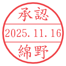 オプションの「電子透かし」をチェックし[生成]すると、見た目には分からないように、UNIXタイムスタンプを識別情報としてPNG形式の日付印に埋め込みます。 日付スタンプメーカーの使い方「部署」「名前」は最大8文字まで入力が可能です。「スタンプの色」を選択し、[生成]ボタン押下で印影画像が更新され、背景を透明に設定したPNG形式とPDF形式の印影画像がリンクからダウンロードできます。 オプションの「電子透かし」は、その性格上日付印ととても相性の良い付加サービスです。 別ページの「タイムスタンプと電子透かし」でも詳しく解説しますが、このオプションを追加することで、日付印が生成された日時に確かにその印が存在していることが証明されます。 ![]() 綿野さんの電子印鑑が作れます。社内でのデータ書類閲覧確認用など、認印的な使い方のできる電子印鑑が作れます。 ![]() 古代文字で落款印が作れます。「落款スタンプメーカー」で作品を引き立たせる落款印が作れます。