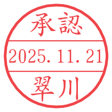 オプションの「電子透かし」をチェックし[生成]すると、見た目には分からないように、UNIXタイムスタンプを識別情報としてPNG形式の日付印に埋め込みます。 日付スタンプメーカーの使い方「部署」「名前」は最大8文字まで入力が可能です。「スタンプの色」を選択し、[生成]ボタン押下で印影画像が更新され、背景を透明に設定したPNG形式とPDF形式の印影画像がリンクからダウンロードできます。 オプションの「電子透かし」は、その性格上日付印ととても相性の良い付加サービスです。 別ページの「タイムスタンプと電子透かし」でも詳しく解説しますが、このオプションを追加することで、日付印が生成された日時に確かにその印が存在していることが証明されます。 ![]() 翠川さんの電子印鑑が作れます。社内でのデータ書類閲覧確認用など、認印的な使い方のできる電子印鑑が作れます。 ![]() 古代文字で落款印が作れます。「落款スタンプメーカー」で作品を引き立たせる落款印が作れます。