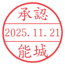 オプションの「電子透かし」をチェックし[生成]すると、見た目には分からないように、UNIXタイムスタンプを識別情報としてPNG形式の日付印に埋め込みます。 日付スタンプメーカーの使い方「部署」「名前」は最大8文字まで入力が可能です。「スタンプの色」を選択し、[生成]ボタン押下で印影画像が更新され、背景を透明に設定したPNG形式とPDF形式の印影画像がリンクからダウンロードできます。 オプションの「電子透かし」は、その性格上日付印ととても相性の良い付加サービスです。 別ページの「タイムスタンプと電子透かし」でも詳しく解説しますが、このオプションを追加することで、日付印が生成された日時に確かにその印が存在していることが証明されます。 ![]() 能城さんの電子印鑑が作れます。社内でのデータ書類閲覧確認用など、認印的な使い方のできる電子印鑑が作れます。 ![]() 古代文字で落款印が作れます。「落款スタンプメーカー」で作品を引き立たせる落款印が作れます。