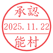 オプションの「電子透かし」をチェックし[生成]すると、見た目には分からないように、UNIXタイムスタンプを識別情報としてPNG形式の日付印に埋め込みます。 日付スタンプメーカーの使い方「部署」「名前」は最大8文字まで入力が可能です。「スタンプの色」を選択し、[生成]ボタン押下で印影画像が更新され、背景を透明に設定したPNG形式とPDF形式の印影画像がリンクからダウンロードできます。 オプションの「電子透かし」は、その性格上日付印ととても相性の良い付加サービスです。 別ページの「タイムスタンプと電子透かし」でも詳しく解説しますが、このオプションを追加することで、日付印が生成された日時に確かにその印が存在していることが証明されます。 ![]() 能村さんの電子印鑑が作れます。社内でのデータ書類閲覧確認用など、認印的な使い方のできる電子印鑑が作れます。 ![]() 古代文字で落款印が作れます。「落款スタンプメーカー」で作品を引き立たせる落款印が作れます。
