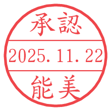 オプションの「電子透かし」をチェックし[生成]すると、見た目には分からないように、UNIXタイムスタンプを識別情報としてPNG形式の日付印に埋め込みます。 日付スタンプメーカーの使い方「部署」「名前」は最大8文字まで入力が可能です。「スタンプの色」を選択し、[生成]ボタン押下で印影画像が更新され、背景を透明に設定したPNG形式とPDF形式の印影画像がリンクからダウンロードできます。 オプションの「電子透かし」は、その性格上日付印ととても相性の良い付加サービスです。 別ページの「タイムスタンプと電子透かし」でも詳しく解説しますが、このオプションを追加することで、日付印が生成された日時に確かにその印が存在していることが証明されます。 ![]() 能美さんの電子印鑑が作れます。社内でのデータ書類閲覧確認用など、認印的な使い方のできる電子印鑑が作れます。 ![]() 古代文字で落款印が作れます。「落款スタンプメーカー」で作品を引き立たせる落款印が作れます。