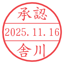 オプションの「電子透かし」をチェックし[生成]すると、見た目には分からないように、UNIXタイムスタンプを識別情報としてPNG形式の日付印に埋め込みます。 日付スタンプメーカーの使い方「部署」「名前」は最大8文字まで入力が可能です。「スタンプの色」を選択し、[生成]ボタン押下で印影画像が更新され、背景を透明に設定したPNG形式とPDF形式の印影画像がリンクからダウンロードできます。 オプションの「電子透かし」は、その性格上日付印ととても相性の良い付加サービスです。 別ページの「タイムスタンプと電子透かし」でも詳しく解説しますが、このオプションを追加することで、日付印が生成された日時に確かにその印が存在していることが証明されます。 ![]() 舎川さんの電子印鑑が作れます。社内でのデータ書類閲覧確認用など、認印的な使い方のできる電子印鑑が作れます。 ![]() 古代文字で落款印が作れます。「落款スタンプメーカー」で作品を引き立たせる落款印が作れます。