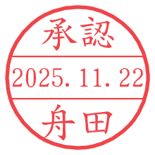 オプションの「電子透かし」をチェックし[生成]すると、見た目には分からないように、UNIXタイムスタンプを識別情報としてPNG形式の日付印に埋め込みます。 日付スタンプメーカーの使い方「部署」「名前」は最大8文字まで入力が可能です。「スタンプの色」を選択し、[生成]ボタン押下で印影画像が更新され、背景を透明に設定したPNG形式とPDF形式の印影画像がリンクからダウンロードできます。 オプションの「電子透かし」は、その性格上日付印ととても相性の良い付加サービスです。 別ページの「タイムスタンプと電子透かし」でも詳しく解説しますが、このオプションを追加することで、日付印が生成された日時に確かにその印が存在していることが証明されます。 ![]() 舟田さんの電子印鑑が作れます。社内でのデータ書類閲覧確認用など、認印的な使い方のできる電子印鑑が作れます。 ![]() 古代文字で落款印が作れます。「落款スタンプメーカー」で作品を引き立たせる落款印が作れます。
