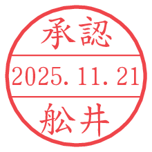 オプションの「電子透かし」をチェックし[生成]すると、見た目には分からないように、UNIXタイムスタンプを識別情報としてPNG形式の日付印に埋め込みます。 日付スタンプメーカーの使い方「部署」「名前」は最大8文字まで入力が可能です。「スタンプの色」を選択し、[生成]ボタン押下で印影画像が更新され、背景を透明に設定したPNG形式とPDF形式の印影画像がリンクからダウンロードできます。 オプションの「電子透かし」は、その性格上日付印ととても相性の良い付加サービスです。 別ページの「タイムスタンプと電子透かし」でも詳しく解説しますが、このオプションを追加することで、日付印が生成された日時に確かにその印が存在していることが証明されます。 ![]() 舩井さんの電子印鑑が作れます。社内でのデータ書類閲覧確認用など、認印的な使い方のできる電子印鑑が作れます。 ![]() 古代文字で落款印が作れます。「落款スタンプメーカー」で作品を引き立たせる落款印が作れます。