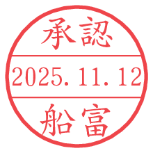 オプションの「電子透かし」をチェックし[生成]すると、見た目には分からないように、UNIXタイムスタンプを識別情報としてPNG形式の日付印に埋め込みます。 日付スタンプメーカーの使い方「部署」「名前」は最大8文字まで入力が可能です。「スタンプの色」を選択し、[生成]ボタン押下で印影画像が更新され、背景を透明に設定したPNG形式とPDF形式の印影画像がリンクからダウンロードできます。 オプションの「電子透かし」は、その性格上日付印ととても相性の良い付加サービスです。 別ページの「タイムスタンプと電子透かし」でも詳しく解説しますが、このオプションを追加することで、日付印が生成された日時に確かにその印が存在していることが証明されます。 ![]() 船富さんの電子印鑑が作れます。社内でのデータ書類閲覧確認用など、認印的な使い方のできる電子印鑑が作れます。 ![]() 古代文字で落款印が作れます。「落款スタンプメーカー」で作品を引き立たせる落款印が作れます。