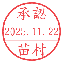 オプションの「電子透かし」をチェックし[生成]すると、見た目には分からないように、UNIXタイムスタンプを識別情報としてPNG形式の日付印に埋め込みます。 日付スタンプメーカーの使い方「部署」「名前」は最大8文字まで入力が可能です。「スタンプの色」を選択し、[生成]ボタン押下で印影画像が更新され、背景を透明に設定したPNG形式とPDF形式の印影画像がリンクからダウンロードできます。 オプションの「電子透かし」は、その性格上日付印ととても相性の良い付加サービスです。 別ページの「タイムスタンプと電子透かし」でも詳しく解説しますが、このオプションを追加することで、日付印が生成された日時に確かにその印が存在していることが証明されます。 ![]() 苗村さんの電子印鑑が作れます。社内でのデータ書類閲覧確認用など、認印的な使い方のできる電子印鑑が作れます。 ![]() 古代文字で落款印が作れます。「落款スタンプメーカー」で作品を引き立たせる落款印が作れます。