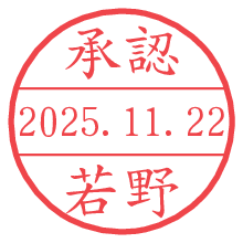 オプションの「電子透かし」をチェックし[生成]すると、見た目には分からないように、UNIXタイムスタンプを識別情報としてPNG形式の日付印に埋め込みます。 日付スタンプメーカーの使い方「部署」「名前」は最大8文字まで入力が可能です。「スタンプの色」を選択し、[生成]ボタン押下で印影画像が更新され、背景を透明に設定したPNG形式とPDF形式の印影画像がリンクからダウンロードできます。 オプションの「電子透かし」は、その性格上日付印ととても相性の良い付加サービスです。 別ページの「タイムスタンプと電子透かし」でも詳しく解説しますが、このオプションを追加することで、日付印が生成された日時に確かにその印が存在していることが証明されます。 ![]() 若野さんの電子印鑑が作れます。社内でのデータ書類閲覧確認用など、認印的な使い方のできる電子印鑑が作れます。 ![]() 古代文字で落款印が作れます。「落款スタンプメーカー」で作品を引き立たせる落款印が作れます。