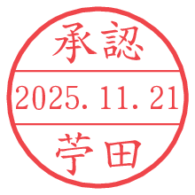 オプションの「電子透かし」をチェックし[生成]すると、見た目には分からないように、UNIXタイムスタンプを識別情報としてPNG形式の日付印に埋め込みます。 日付スタンプメーカーの使い方「部署」「名前」は最大8文字まで入力が可能です。「スタンプの色」を選択し、[生成]ボタン押下で印影画像が更新され、背景を透明に設定したPNG形式とPDF形式の印影画像がリンクからダウンロードできます。 オプションの「電子透かし」は、その性格上日付印ととても相性の良い付加サービスです。 別ページの「タイムスタンプと電子透かし」でも詳しく解説しますが、このオプションを追加することで、日付印が生成された日時に確かにその印が存在していることが証明されます。 ![]() 苧田さんの電子印鑑が作れます。社内でのデータ書類閲覧確認用など、認印的な使い方のできる電子印鑑が作れます。 ![]() 古代文字で落款印が作れます。「落款スタンプメーカー」で作品を引き立たせる落款印が作れます。
