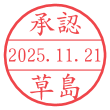 オプションの「電子透かし」をチェックし[生成]すると、見た目には分からないように、UNIXタイムスタンプを識別情報としてPNG形式の日付印に埋め込みます。 日付スタンプメーカーの使い方「部署」「名前」は最大8文字まで入力が可能です。「スタンプの色」を選択し、[生成]ボタン押下で印影画像が更新され、背景を透明に設定したPNG形式とPDF形式の印影画像がリンクからダウンロードできます。 オプションの「電子透かし」は、その性格上日付印ととても相性の良い付加サービスです。 別ページの「タイムスタンプと電子透かし」でも詳しく解説しますが、このオプションを追加することで、日付印が生成された日時に確かにその印が存在していることが証明されます。 ![]() 草島さんの電子印鑑が作れます。社内でのデータ書類閲覧確認用など、認印的な使い方のできる電子印鑑が作れます。 ![]() 古代文字で落款印が作れます。「落款スタンプメーカー」で作品を引き立たせる落款印が作れます。