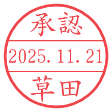 オプションの「電子透かし」をチェックし[生成]すると、見た目には分からないように、UNIXタイムスタンプを識別情報としてPNG形式の日付印に埋め込みます。 日付スタンプメーカーの使い方「部署」「名前」は最大8文字まで入力が可能です。「スタンプの色」を選択し、[生成]ボタン押下で印影画像が更新され、背景を透明に設定したPNG形式とPDF形式の印影画像がリンクからダウンロードできます。 オプションの「電子透かし」は、その性格上日付印ととても相性の良い付加サービスです。 別ページの「タイムスタンプと電子透かし」でも詳しく解説しますが、このオプションを追加することで、日付印が生成された日時に確かにその印が存在していることが証明されます。 ![]() 草田さんの電子印鑑が作れます。社内でのデータ書類閲覧確認用など、認印的な使い方のできる電子印鑑が作れます。 ![]() 古代文字で落款印が作れます。「落款スタンプメーカー」で作品を引き立たせる落款印が作れます。