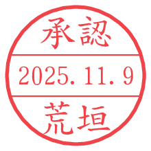 オプションの「電子透かし」をチェックし[生成]すると、見た目には分からないように、UNIXタイムスタンプを識別情報としてPNG形式の日付印に埋め込みます。 日付スタンプメーカーの使い方「部署」「名前」は最大8文字まで入力が可能です。「スタンプの色」を選択し、[生成]ボタン押下で印影画像が更新され、背景を透明に設定したPNG形式とPDF形式の印影画像がリンクからダウンロードできます。 オプションの「電子透かし」は、その性格上日付印ととても相性の良い付加サービスです。 別ページの「タイムスタンプと電子透かし」でも詳しく解説しますが、このオプションを追加することで、日付印が生成された日時に確かにその印が存在していることが証明されます。 ![]() 荒垣さんの電子印鑑が作れます。社内でのデータ書類閲覧確認用など、認印的な使い方のできる電子印鑑が作れます。 ![]() 古代文字で落款印が作れます。「落款スタンプメーカー」で作品を引き立たせる落款印が作れます。