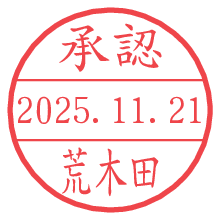 オプションの「電子透かし」をチェックし[生成]すると、見た目には分からないように、UNIXタイムスタンプを識別情報としてPNG形式の日付印に埋め込みます。 日付スタンプメーカーの使い方「部署」「名前」は最大8文字まで入力が可能です。「スタンプの色」を選択し、[生成]ボタン押下で印影画像が更新され、背景を透明に設定したPNG形式とPDF形式の印影画像がリンクからダウンロードできます。 オプションの「電子透かし」は、その性格上日付印ととても相性の良い付加サービスです。 別ページの「タイムスタンプと電子透かし」でも詳しく解説しますが、このオプションを追加することで、日付印が生成された日時に確かにその印が存在していることが証明されます。 ![]() 荒木田さんの電子印鑑が作れます。社内でのデータ書類閲覧確認用など、認印的な使い方のできる電子印鑑が作れます。 ![]() 古代文字で落款印が作れます。「落款スタンプメーカー」で作品を引き立たせる落款印が作れます。