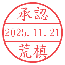 オプションの「電子透かし」をチェックし[生成]すると、見た目には分からないように、UNIXタイムスタンプを識別情報としてPNG形式の日付印に埋め込みます。 日付スタンプメーカーの使い方「部署」「名前」は最大8文字まで入力が可能です。「スタンプの色」を選択し、[生成]ボタン押下で印影画像が更新され、背景を透明に設定したPNG形式とPDF形式の印影画像がリンクからダウンロードできます。 オプションの「電子透かし」は、その性格上日付印ととても相性の良い付加サービスです。 別ページの「タイムスタンプと電子透かし」でも詳しく解説しますが、このオプションを追加することで、日付印が生成された日時に確かにその印が存在していることが証明されます。 ![]() 荒槙さんの電子印鑑が作れます。社内でのデータ書類閲覧確認用など、認印的な使い方のできる電子印鑑が作れます。 ![]() 古代文字で落款印が作れます。「落款スタンプメーカー」で作品を引き立たせる落款印が作れます。