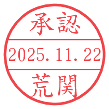 オプションの「電子透かし」をチェックし[生成]すると、見た目には分からないように、UNIXタイムスタンプを識別情報としてPNG形式の日付印に埋め込みます。 日付スタンプメーカーの使い方「部署」「名前」は最大8文字まで入力が可能です。「スタンプの色」を選択し、[生成]ボタン押下で印影画像が更新され、背景を透明に設定したPNG形式とPDF形式の印影画像がリンクからダウンロードできます。 オプションの「電子透かし」は、その性格上日付印ととても相性の良い付加サービスです。 別ページの「タイムスタンプと電子透かし」でも詳しく解説しますが、このオプションを追加することで、日付印が生成された日時に確かにその印が存在していることが証明されます。 ![]() 荒関さんの電子印鑑が作れます。社内でのデータ書類閲覧確認用など、認印的な使い方のできる電子印鑑が作れます。 ![]() 古代文字で落款印が作れます。「落款スタンプメーカー」で作品を引き立たせる落款印が作れます。