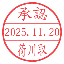 オプションの「電子透かし」をチェックし[生成]すると、見た目には分からないように、UNIXタイムスタンプを識別情報としてPNG形式の日付印に埋め込みます。 日付スタンプメーカーの使い方「部署」「名前」は最大8文字まで入力が可能です。「スタンプの色」を選択し、[生成]ボタン押下で印影画像が更新され、背景を透明に設定したPNG形式とPDF形式の印影画像がリンクからダウンロードできます。 オプションの「電子透かし」は、その性格上日付印ととても相性の良い付加サービスです。 別ページの「タイムスタンプと電子透かし」でも詳しく解説しますが、このオプションを追加することで、日付印が生成された日時に確かにその印が存在していることが証明されます。 ![]() 荷川取さんの電子印鑑が作れます。社内でのデータ書類閲覧確認用など、認印的な使い方のできる電子印鑑が作れます。 ![]() 古代文字で落款印が作れます。「落款スタンプメーカー」で作品を引き立たせる落款印が作れます。