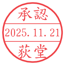 オプションの「電子透かし」をチェックし[生成]すると、見た目には分からないように、UNIXタイムスタンプを識別情報としてPNG形式の日付印に埋め込みます。 日付スタンプメーカーの使い方「部署」「名前」は最大8文字まで入力が可能です。「スタンプの色」を選択し、[生成]ボタン押下で印影画像が更新され、背景を透明に設定したPNG形式とPDF形式の印影画像がリンクからダウンロードできます。 オプションの「電子透かし」は、その性格上日付印ととても相性の良い付加サービスです。 別ページの「タイムスタンプと電子透かし」でも詳しく解説しますが、このオプションを追加することで、日付印が生成された日時に確かにその印が存在していることが証明されます。 ![]() 荻堂さんの電子印鑑が作れます。社内でのデータ書類閲覧確認用など、認印的な使い方のできる電子印鑑が作れます。 ![]() 古代文字で落款印が作れます。「落款スタンプメーカー」で作品を引き立たせる落款印が作れます。