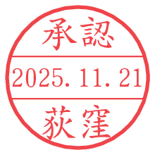 オプションの「電子透かし」をチェックし[生成]すると、見た目には分からないように、UNIXタイムスタンプを識別情報としてPNG形式の日付印に埋め込みます。 日付スタンプメーカーの使い方「部署」「名前」は最大8文字まで入力が可能です。「スタンプの色」を選択し、[生成]ボタン押下で印影画像が更新され、背景を透明に設定したPNG形式とPDF形式の印影画像がリンクからダウンロードできます。 オプションの「電子透かし」は、その性格上日付印ととても相性の良い付加サービスです。 別ページの「タイムスタンプと電子透かし」でも詳しく解説しますが、このオプションを追加することで、日付印が生成された日時に確かにその印が存在していることが証明されます。 ![]() 荻窪さんの電子印鑑が作れます。社内でのデータ書類閲覧確認用など、認印的な使い方のできる電子印鑑が作れます。 ![]() 古代文字で落款印が作れます。「落款スタンプメーカー」で作品を引き立たせる落款印が作れます。