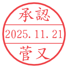 オプションの「電子透かし」をチェックし[生成]すると、見た目には分からないように、UNIXタイムスタンプを識別情報としてPNG形式の日付印に埋め込みます。 日付スタンプメーカーの使い方「部署」「名前」は最大8文字まで入力が可能です。「スタンプの色」を選択し、[生成]ボタン押下で印影画像が更新され、背景を透明に設定したPNG形式とPDF形式の印影画像がリンクからダウンロードできます。 オプションの「電子透かし」は、その性格上日付印ととても相性の良い付加サービスです。 別ページの「タイムスタンプと電子透かし」でも詳しく解説しますが、このオプションを追加することで、日付印が生成された日時に確かにその印が存在していることが証明されます。 ![]() 菅又さんの電子印鑑が作れます。社内でのデータ書類閲覧確認用など、認印的な使い方のできる電子印鑑が作れます。 ![]() 古代文字で落款印が作れます。「落款スタンプメーカー」で作品を引き立たせる落款印が作れます。