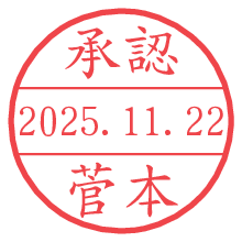 オプションの「電子透かし」をチェックし[生成]すると、見た目には分からないように、UNIXタイムスタンプを識別情報としてPNG形式の日付印に埋め込みます。 日付スタンプメーカーの使い方「部署」「名前」は最大8文字まで入力が可能です。「スタンプの色」を選択し、[生成]ボタン押下で印影画像が更新され、背景を透明に設定したPNG形式とPDF形式の印影画像がリンクからダウンロードできます。 オプションの「電子透かし」は、その性格上日付印ととても相性の良い付加サービスです。 別ページの「タイムスタンプと電子透かし」でも詳しく解説しますが、このオプションを追加することで、日付印が生成された日時に確かにその印が存在していることが証明されます。 ![]() 菅本さんの電子印鑑が作れます。社内でのデータ書類閲覧確認用など、認印的な使い方のできる電子印鑑が作れます。 ![]() 古代文字で落款印が作れます。「落款スタンプメーカー」で作品を引き立たせる落款印が作れます。