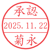 オプションの「電子透かし」をチェックし[生成]すると、見た目には分からないように、UNIXタイムスタンプを識別情報としてPNG形式の日付印に埋め込みます。 日付スタンプメーカーの使い方「部署」「名前」は最大8文字まで入力が可能です。「スタンプの色」を選択し、[生成]ボタン押下で印影画像が更新され、背景を透明に設定したPNG形式とPDF形式の印影画像がリンクからダウンロードできます。 オプションの「電子透かし」は、その性格上日付印ととても相性の良い付加サービスです。 別ページの「タイムスタンプと電子透かし」でも詳しく解説しますが、このオプションを追加することで、日付印が生成された日時に確かにその印が存在していることが証明されます。 ![]() 菊永さんの電子印鑑が作れます。社内でのデータ書類閲覧確認用など、認印的な使い方のできる電子印鑑が作れます。 ![]() 古代文字で落款印が作れます。「落款スタンプメーカー」で作品を引き立たせる落款印が作れます。