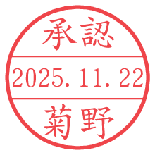 オプションの「電子透かし」をチェックし[生成]すると、見た目には分からないように、UNIXタイムスタンプを識別情報としてPNG形式の日付印に埋め込みます。 日付スタンプメーカーの使い方「部署」「名前」は最大8文字まで入力が可能です。「スタンプの色」を選択し、[生成]ボタン押下で印影画像が更新され、背景を透明に設定したPNG形式とPDF形式の印影画像がリンクからダウンロードできます。 オプションの「電子透かし」は、その性格上日付印ととても相性の良い付加サービスです。 別ページの「タイムスタンプと電子透かし」でも詳しく解説しますが、このオプションを追加することで、日付印が生成された日時に確かにその印が存在していることが証明されます。 ![]() 菊野さんの電子印鑑が作れます。社内でのデータ書類閲覧確認用など、認印的な使い方のできる電子印鑑が作れます。 ![]() 古代文字で落款印が作れます。「落款スタンプメーカー」で作品を引き立たせる落款印が作れます。