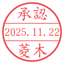 オプションの「電子透かし」をチェックし[生成]すると、見た目には分からないように、UNIXタイムスタンプを識別情報としてPNG形式の日付印に埋め込みます。 日付スタンプメーカーの使い方「部署」「名前」は最大8文字まで入力が可能です。「スタンプの色」を選択し、[生成]ボタン押下で印影画像が更新され、背景を透明に設定したPNG形式とPDF形式の印影画像がリンクからダウンロードできます。 オプションの「電子透かし」は、その性格上日付印ととても相性の良い付加サービスです。 別ページの「タイムスタンプと電子透かし」でも詳しく解説しますが、このオプションを追加することで、日付印が生成された日時に確かにその印が存在していることが証明されます。 ![]() 菱木さんの電子印鑑が作れます。社内でのデータ書類閲覧確認用など、認印的な使い方のできる電子印鑑が作れます。 ![]() 古代文字で落款印が作れます。「落款スタンプメーカー」で作品を引き立たせる落款印が作れます。