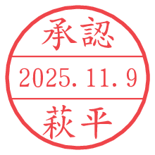 オプションの「電子透かし」をチェックし[生成]すると、見た目には分からないように、UNIXタイムスタンプを識別情報としてPNG形式の日付印に埋め込みます。 日付スタンプメーカーの使い方「部署」「名前」は最大8文字まで入力が可能です。「スタンプの色」を選択し、[生成]ボタン押下で印影画像が更新され、背景を透明に設定したPNG形式とPDF形式の印影画像がリンクからダウンロードできます。 オプションの「電子透かし」は、その性格上日付印ととても相性の良い付加サービスです。 別ページの「タイムスタンプと電子透かし」でも詳しく解説しますが、このオプションを追加することで、日付印が生成された日時に確かにその印が存在していることが証明されます。 ![]() 萩平さんの電子印鑑が作れます。社内でのデータ書類閲覧確認用など、認印的な使い方のできる電子印鑑が作れます。 ![]() 古代文字で落款印が作れます。「落款スタンプメーカー」で作品を引き立たせる落款印が作れます。