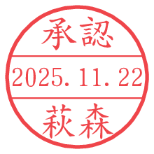 オプションの「電子透かし」をチェックし[生成]すると、見た目には分からないように、UNIXタイムスタンプを識別情報としてPNG形式の日付印に埋め込みます。 日付スタンプメーカーの使い方「部署」「名前」は最大8文字まで入力が可能です。「スタンプの色」を選択し、[生成]ボタン押下で印影画像が更新され、背景を透明に設定したPNG形式とPDF形式の印影画像がリンクからダウンロードできます。 オプションの「電子透かし」は、その性格上日付印ととても相性の良い付加サービスです。 別ページの「タイムスタンプと電子透かし」でも詳しく解説しますが、このオプションを追加することで、日付印が生成された日時に確かにその印が存在していることが証明されます。 ![]() 萩森さんの電子印鑑が作れます。社内でのデータ書類閲覧確認用など、認印的な使い方のできる電子印鑑が作れます。 ![]() 古代文字で落款印が作れます。「落款スタンプメーカー」で作品を引き立たせる落款印が作れます。