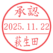 オプションの「電子透かし」をチェックし[生成]すると、見た目には分からないように、UNIXタイムスタンプを識別情報としてPNG形式の日付印に埋め込みます。 日付スタンプメーカーの使い方「部署」「名前」は最大8文字まで入力が可能です。「スタンプの色」を選択し、[生成]ボタン押下で印影画像が更新され、背景を透明に設定したPNG形式とPDF形式の印影画像がリンクからダウンロードできます。 オプションの「電子透かし」は、その性格上日付印ととても相性の良い付加サービスです。 別ページの「タイムスタンプと電子透かし」でも詳しく解説しますが、このオプションを追加することで、日付印が生成された日時に確かにその印が存在していることが証明されます。 ![]() 萩生田さんの電子印鑑が作れます。社内でのデータ書類閲覧確認用など、認印的な使い方のできる電子印鑑が作れます。 ![]() 古代文字で落款印が作れます。「落款スタンプメーカー」で作品を引き立たせる落款印が作れます。