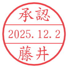 オプションの「電子透かし」をチェックし[生成]すると、見た目には分からないように、UNIXタイムスタンプを識別情報としてPNG形式の日付印に埋め込みます。 日付スタンプメーカーの使い方「部署」「名前」は最大8文字まで入力が可能です。「スタンプの色」を選択し、[生成]ボタン押下で印影画像が更新され、背景を透明に設定したPNG形式とPDF形式の印影画像がリンクからダウンロードできます。 オプションの「電子透かし」は、その性格上日付印ととても相性の良い付加サービスです。 別ページの「タイムスタンプと電子透かし」でも詳しく解説しますが、このオプションを追加することで、日付印が生成された日時に確かにその印が存在していることが証明されます。 ![]() 藤井さんの電子印鑑が作れます。社内でのデータ書類閲覧確認用など、認印的な使い方のできる電子印鑑が作れます。 ![]() 古代文字で落款印が作れます。「落款スタンプメーカー」で作品を引き立たせる落款印が作れます。