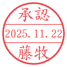 オプションの「電子透かし」をチェックし[生成]すると、見た目には分からないように、UNIXタイムスタンプを識別情報としてPNG形式の日付印に埋め込みます。 日付スタンプメーカーの使い方「部署」「名前」は最大8文字まで入力が可能です。「スタンプの色」を選択し、[生成]ボタン押下で印影画像が更新され、背景を透明に設定したPNG形式とPDF形式の印影画像がリンクからダウンロードできます。 オプションの「電子透かし」は、その性格上日付印ととても相性の良い付加サービスです。 別ページの「タイムスタンプと電子透かし」でも詳しく解説しますが、このオプションを追加することで、日付印が生成された日時に確かにその印が存在していることが証明されます。 ![]() 藤牧さんの電子印鑑が作れます。社内でのデータ書類閲覧確認用など、認印的な使い方のできる電子印鑑が作れます。 ![]() 古代文字で落款印が作れます。「落款スタンプメーカー」で作品を引き立たせる落款印が作れます。