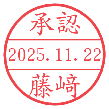オプションの「電子透かし」をチェックし[生成]すると、見た目には分からないように、UNIXタイムスタンプを識別情報としてPNG形式の日付印に埋め込みます。 日付スタンプメーカーの使い方「部署」「名前」は最大8文字まで入力が可能です。「スタンプの色」を選択し、[生成]ボタン押下で印影画像が更新され、背景を透明に設定したPNG形式とPDF形式の印影画像がリンクからダウンロードできます。 オプションの「電子透かし」は、その性格上日付印ととても相性の良い付加サービスです。 別ページの「タイムスタンプと電子透かし」でも詳しく解説しますが、このオプションを追加することで、日付印が生成された日時に確かにその印が存在していることが証明されます。 ![]() 藤﨑さんの電子印鑑が作れます。社内でのデータ書類閲覧確認用など、認印的な使い方のできる電子印鑑が作れます。 ![]() 古代文字で落款印が作れます。「落款スタンプメーカー」で作品を引き立たせる落款印が作れます。