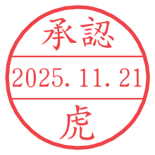 オプションの「電子透かし」をチェックし[生成]すると、見た目には分からないように、UNIXタイムスタンプを識別情報としてPNG形式の日付印に埋め込みます。 日付スタンプメーカーの使い方「部署」「名前」は最大8文字まで入力が可能です。「スタンプの色」を選択し、[生成]ボタン押下で印影画像が更新され、背景を透明に設定したPNG形式とPDF形式の印影画像がリンクからダウンロードできます。 オプションの「電子透かし」は、その性格上日付印ととても相性の良い付加サービスです。 別ページの「タイムスタンプと電子透かし」でも詳しく解説しますが、このオプションを追加することで、日付印が生成された日時に確かにその印が存在していることが証明されます。 ![]() 虎さんの電子印鑑が作れます。社内でのデータ書類閲覧確認用など、認印的な使い方のできる電子印鑑が作れます。 ![]() 古代文字で落款印が作れます。「落款スタンプメーカー」で作品を引き立たせる落款印が作れます。