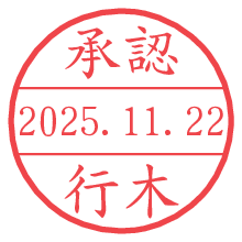オプションの「電子透かし」をチェックし[生成]すると、見た目には分からないように、UNIXタイムスタンプを識別情報としてPNG形式の日付印に埋め込みます。 日付スタンプメーカーの使い方「部署」「名前」は最大8文字まで入力が可能です。「スタンプの色」を選択し、[生成]ボタン押下で印影画像が更新され、背景を透明に設定したPNG形式とPDF形式の印影画像がリンクからダウンロードできます。 オプションの「電子透かし」は、その性格上日付印ととても相性の良い付加サービスです。 別ページの「タイムスタンプと電子透かし」でも詳しく解説しますが、このオプションを追加することで、日付印が生成された日時に確かにその印が存在していることが証明されます。 ![]() 行木さんの電子印鑑が作れます。社内でのデータ書類閲覧確認用など、認印的な使い方のできる電子印鑑が作れます。 ![]() 古代文字で落款印が作れます。「落款スタンプメーカー」で作品を引き立たせる落款印が作れます。