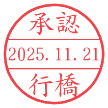 オプションの「電子透かし」をチェックし[生成]すると、見た目には分からないように、UNIXタイムスタンプを識別情報としてPNG形式の日付印に埋め込みます。 日付スタンプメーカーの使い方「部署」「名前」は最大8文字まで入力が可能です。「スタンプの色」を選択し、[生成]ボタン押下で印影画像が更新され、背景を透明に設定したPNG形式とPDF形式の印影画像がリンクからダウンロードできます。 オプションの「電子透かし」は、その性格上日付印ととても相性の良い付加サービスです。 別ページの「タイムスタンプと電子透かし」でも詳しく解説しますが、このオプションを追加することで、日付印が生成された日時に確かにその印が存在していることが証明されます。 ![]() 行橋さんの電子印鑑が作れます。社内でのデータ書類閲覧確認用など、認印的な使い方のできる電子印鑑が作れます。 ![]() 古代文字で落款印が作れます。「落款スタンプメーカー」で作品を引き立たせる落款印が作れます。