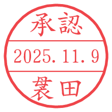オプションの「電子透かし」をチェックし[生成]すると、見た目には分からないように、UNIXタイムスタンプを識別情報としてPNG形式の日付印に埋め込みます。 日付スタンプメーカーの使い方「部署」「名前」は最大8文字まで入力が可能です。「スタンプの色」を選択し、[生成]ボタン押下で印影画像が更新され、背景を透明に設定したPNG形式とPDF形式の印影画像がリンクからダウンロードできます。 オプションの「電子透かし」は、その性格上日付印ととても相性の良い付加サービスです。 別ページの「タイムスタンプと電子透かし」でも詳しく解説しますが、このオプションを追加することで、日付印が生成された日時に確かにその印が存在していることが証明されます。 ![]() 袰田さんの電子印鑑が作れます。社内でのデータ書類閲覧確認用など、認印的な使い方のできる電子印鑑が作れます。 ![]() 古代文字で落款印が作れます。「落款スタンプメーカー」で作品を引き立たせる落款印が作れます。