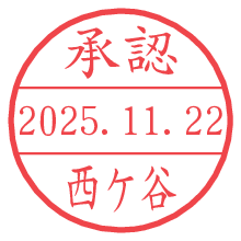 オプションの「電子透かし」をチェックし[生成]すると、見た目には分からないように、UNIXタイムスタンプを識別情報としてPNG形式の日付印に埋め込みます。 日付スタンプメーカーの使い方「部署」「名前」は最大8文字まで入力が可能です。「スタンプの色」を選択し、[生成]ボタン押下で印影画像が更新され、背景を透明に設定したPNG形式とPDF形式の印影画像がリンクからダウンロードできます。 オプションの「電子透かし」は、その性格上日付印ととても相性の良い付加サービスです。 別ページの「タイムスタンプと電子透かし」でも詳しく解説しますが、このオプションを追加することで、日付印が生成された日時に確かにその印が存在していることが証明されます。 ![]() 西ケ谷さんの電子印鑑が作れます。社内でのデータ書類閲覧確認用など、認印的な使い方のできる電子印鑑が作れます。 ![]() 古代文字で落款印が作れます。「落款スタンプメーカー」で作品を引き立たせる落款印が作れます。