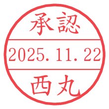 オプションの「電子透かし」をチェックし[生成]すると、見た目には分からないように、UNIXタイムスタンプを識別情報としてPNG形式の日付印に埋め込みます。 日付スタンプメーカーの使い方「部署」「名前」は最大8文字まで入力が可能です。「スタンプの色」を選択し、[生成]ボタン押下で印影画像が更新され、背景を透明に設定したPNG形式とPDF形式の印影画像がリンクからダウンロードできます。 オプションの「電子透かし」は、その性格上日付印ととても相性の良い付加サービスです。 別ページの「タイムスタンプと電子透かし」でも詳しく解説しますが、このオプションを追加することで、日付印が生成された日時に確かにその印が存在していることが証明されます。 ![]() 西丸さんの電子印鑑が作れます。社内でのデータ書類閲覧確認用など、認印的な使い方のできる電子印鑑が作れます。 ![]() 古代文字で落款印が作れます。「落款スタンプメーカー」で作品を引き立たせる落款印が作れます。