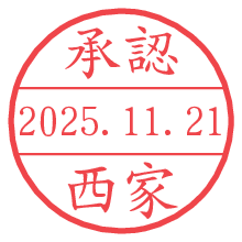 オプションの「電子透かし」をチェックし[生成]すると、見た目には分からないように、UNIXタイムスタンプを識別情報としてPNG形式の日付印に埋め込みます。 日付スタンプメーカーの使い方「部署」「名前」は最大8文字まで入力が可能です。「スタンプの色」を選択し、[生成]ボタン押下で印影画像が更新され、背景を透明に設定したPNG形式とPDF形式の印影画像がリンクからダウンロードできます。 オプションの「電子透かし」は、その性格上日付印ととても相性の良い付加サービスです。 別ページの「タイムスタンプと電子透かし」でも詳しく解説しますが、このオプションを追加することで、日付印が生成された日時に確かにその印が存在していることが証明されます。 ![]() 西家さんの電子印鑑が作れます。社内でのデータ書類閲覧確認用など、認印的な使い方のできる電子印鑑が作れます。 ![]() 古代文字で落款印が作れます。「落款スタンプメーカー」で作品を引き立たせる落款印が作れます。