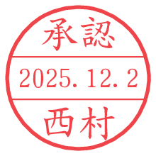 オプションの「電子透かし」をチェックし[生成]すると、見た目には分からないように、UNIXタイムスタンプを識別情報としてPNG形式の日付印に埋め込みます。 日付スタンプメーカーの使い方「部署」「名前」は最大8文字まで入力が可能です。「スタンプの色」を選択し、[生成]ボタン押下で印影画像が更新され、背景を透明に設定したPNG形式とPDF形式の印影画像がリンクからダウンロードできます。 オプションの「電子透かし」は、その性格上日付印ととても相性の良い付加サービスです。 別ページの「タイムスタンプと電子透かし」でも詳しく解説しますが、このオプションを追加することで、日付印が生成された日時に確かにその印が存在していることが証明されます。 ![]() 西村さんの電子印鑑が作れます。社内でのデータ書類閲覧確認用など、認印的な使い方のできる電子印鑑が作れます。 ![]() 古代文字で落款印が作れます。「落款スタンプメーカー」で作品を引き立たせる落款印が作れます。