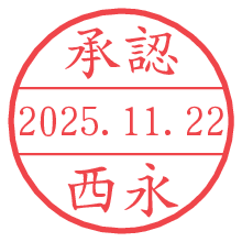 オプションの「電子透かし」をチェックし[生成]すると、見た目には分からないように、UNIXタイムスタンプを識別情報としてPNG形式の日付印に埋め込みます。 日付スタンプメーカーの使い方「部署」「名前」は最大8文字まで入力が可能です。「スタンプの色」を選択し、[生成]ボタン押下で印影画像が更新され、背景を透明に設定したPNG形式とPDF形式の印影画像がリンクからダウンロードできます。 オプションの「電子透かし」は、その性格上日付印ととても相性の良い付加サービスです。 別ページの「タイムスタンプと電子透かし」でも詳しく解説しますが、このオプションを追加することで、日付印が生成された日時に確かにその印が存在していることが証明されます。 ![]() 西永さんの電子印鑑が作れます。社内でのデータ書類閲覧確認用など、認印的な使い方のできる電子印鑑が作れます。 ![]() 古代文字で落款印が作れます。「落款スタンプメーカー」で作品を引き立たせる落款印が作れます。