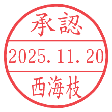 オプションの「電子透かし」をチェックし[生成]すると、見た目には分からないように、UNIXタイムスタンプを識別情報としてPNG形式の日付印に埋め込みます。 日付スタンプメーカーの使い方「部署」「名前」は最大8文字まで入力が可能です。「スタンプの色」を選択し、[生成]ボタン押下で印影画像が更新され、背景を透明に設定したPNG形式とPDF形式の印影画像がリンクからダウンロードできます。 オプションの「電子透かし」は、その性格上日付印ととても相性の良い付加サービスです。 別ページの「タイムスタンプと電子透かし」でも詳しく解説しますが、このオプションを追加することで、日付印が生成された日時に確かにその印が存在していることが証明されます。 ![]() 西海枝さんの電子印鑑が作れます。社内でのデータ書類閲覧確認用など、認印的な使い方のできる電子印鑑が作れます。 ![]() 古代文字で落款印が作れます。「落款スタンプメーカー」で作品を引き立たせる落款印が作れます。